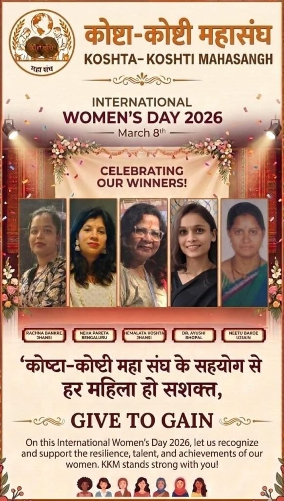 शिवपुरी। कोष्टा–कोष्टी महासंघ द्वारा “Give to Gain” थीम के साथ 7 मार्च 2026 को अंतर्राष्ट्रीय महिला दिवस का गरिमामय ऑनलाइन आयोजन किया गया। कार्यक्रम की…