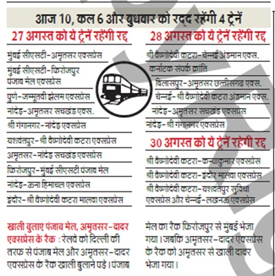 दिया है। इनमें से 10 ट्रेनें 27 अगस्त को, 6 ट्रेनें 28 अगस्त को और 4