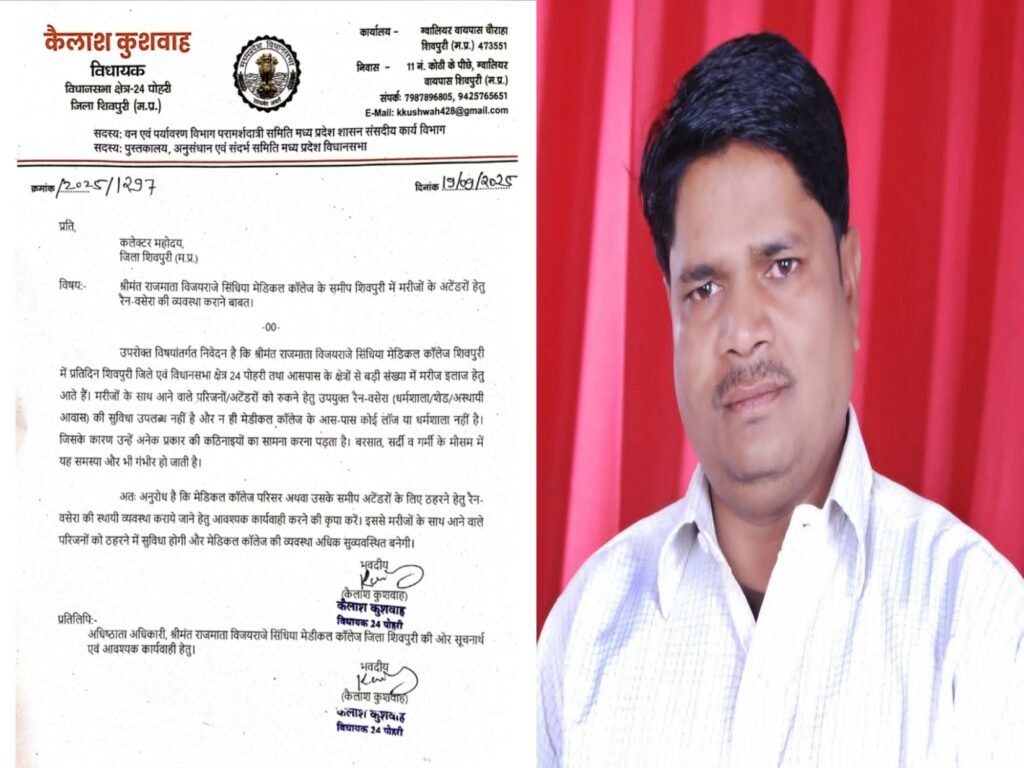 शिवपुरी: पोहरी विधानसभा के कांग्रेस विधायक कैलाश कुशवाह ने श्रीमंत राजमाता विजय राजे सिंधिया मेडिकल कॉलेज के समीप मरीजों के अटेंडर हेतु रैन-वसेरा की व्यवस्था…