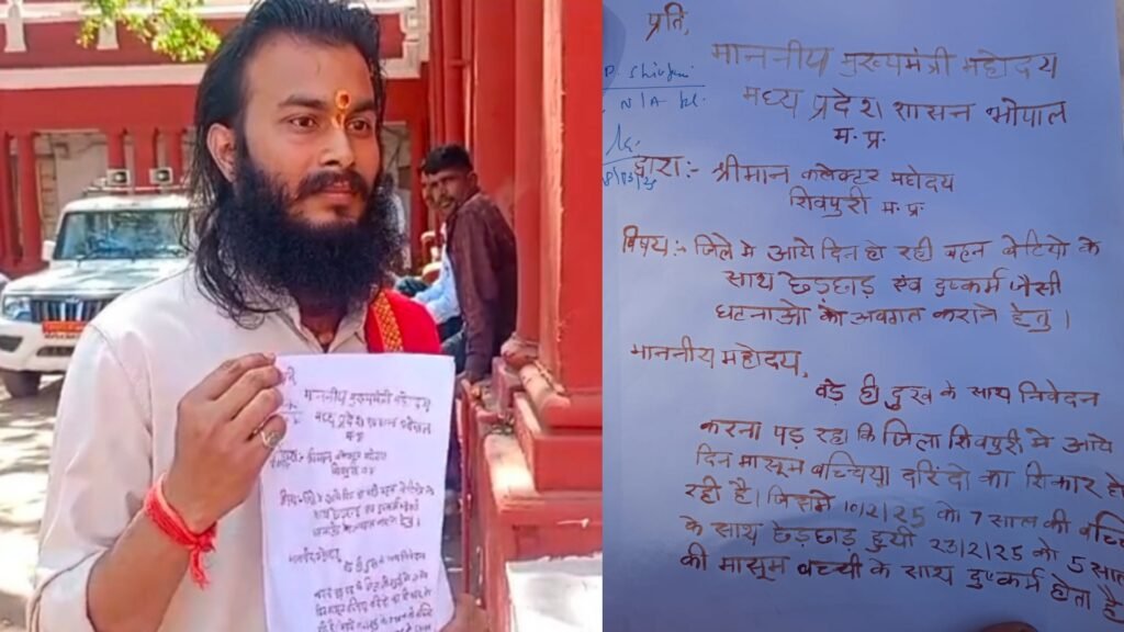 शिवपुरी: कलेक्ट्रेट जनसुनवाई में आज एक साधु ने अपने खून से मुख्यमंत्री के नाम पत्र लिखकर नाबालिक बच्चियों एवं गौ माता के साथ दुष्कर्म करने…