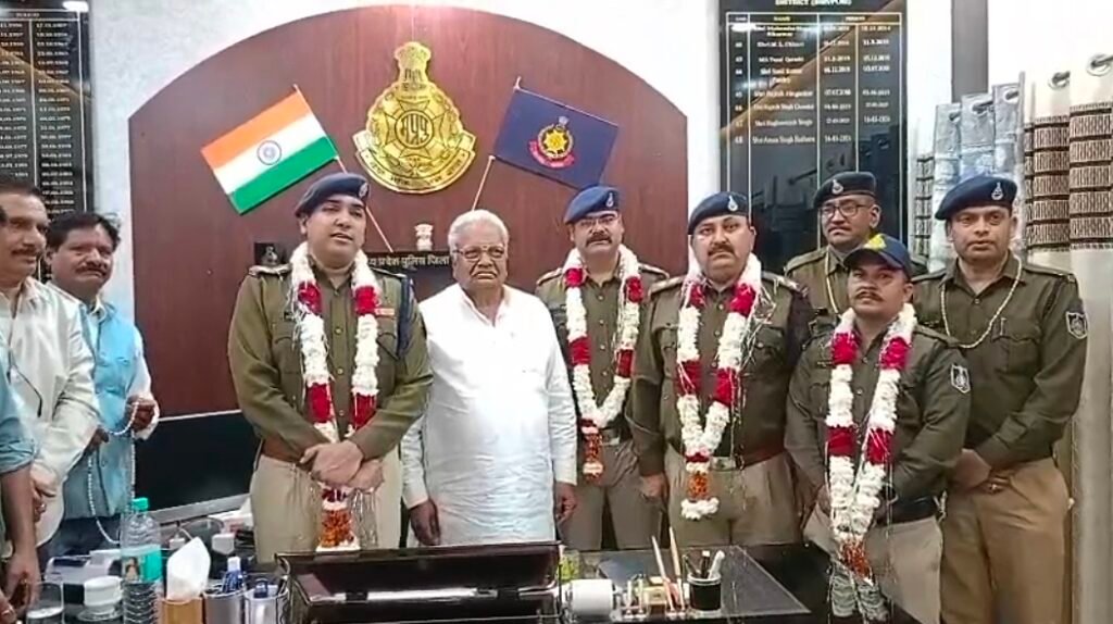 शिवपुरी: विधायक देवेंद्र जैन ने आज एसपी ऑफिस पहुंचकर एसपी अमण सिंह राठौड़ सहित कोतवाली थाना प्रभारी कृपाल सिंह राठौड़ एवं अन्य पुलिसकर्मियों का सम्मान…