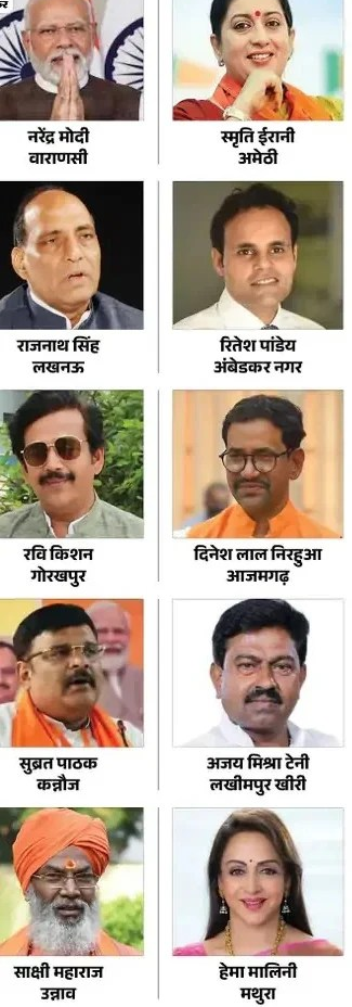 यूपी से 51 नामों की घोषणा की गई है। पुराने चेहरों पर ही दांव लगाया गया है। इनमें 9 केंद्रीय मंत्री हैं।