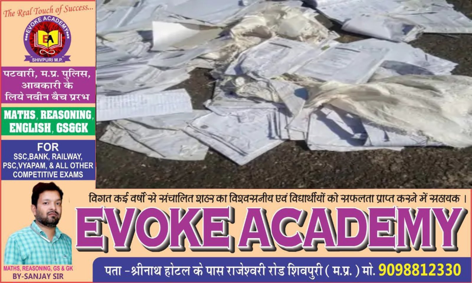 शिवपुरी के 18वीं बटालियन के पास हाईवे किनारे खुले में पड़ी हुई मध्यप्रदेश माध्यमिक शिक्षा मंडल की बोर्ड परीक्षाओं की उत्तर पुस्तिका राहगिरों द्वारा देखी…