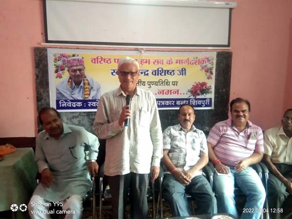– द्वितीय पुण्य तिथि पर पत्रकारों ने किए श्रद्धासुमन अर्पित शिवपुरी। शहर के वरिष्ठ पत्रकार वीरेन्द्र वशिष्ठ की द्वितीय पुण्यतिथि पर श्रद्धांजलि सभा का आयोजन…