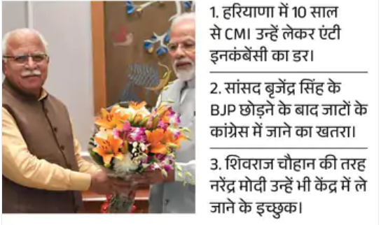 इससे पहले मनोहर लाल ने BJP और जननायक जनता पार्टी (JJP) का गठबंधन टूटने के बाद मंगलवार सुबह 11.50 बजे राज्यपाल को अपना इस्तीफा सौंप दिया था। इसके बाद विधायक दल की बैठक बुलाई गई।