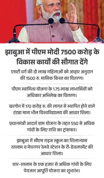 झाबुआ आदिवासियों का सेंट्रल पाइंट है। यहां से पीएम प्रदेश की 6 आदिवासी सीटों रतलाम-झाबुआ, बैतूल, खरगौन, धार, मंडला व शहडोल को साधेंगे। वहीं गुजरात की पंचमहल, छोटा उदयपुर, दाहोद और राजस्थान की बांसवाड़ा लोकसभा पर भी पीएम के इस सभा का असर पड़ेगा।