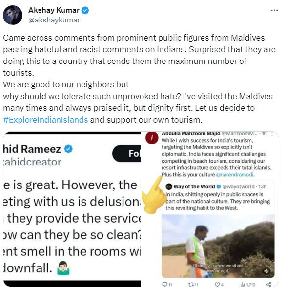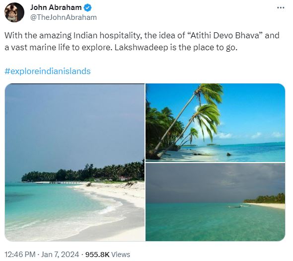 इस बीच, सोशल मीडिया पर रविवार को दिनभर हैशटैग BoycottMaldives ट्रेंड हुआ। दूसरी तरफ बॉलीवुड एक्टर्स और नेटीजन्स ने लक्षद्वीप में पर्यटन को बढ़ावा देने का समर्थन किया। इसके लिए लोगों ने भारत सरकार की तारीफ की और सोशल मीडिया पर #ExploreIndianIsland ट्रेंड कराया।
