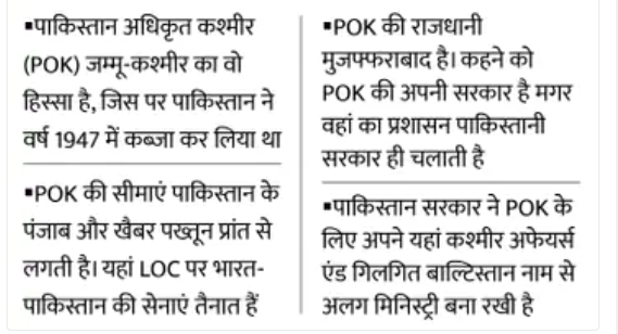 PoK यानी पाकिस्तान अधिकृत कश्मीर भारत का वह हिस्सा है जो पाकिस्तान के साथ लगता है। 1947 में बंटवारे के बाद पाकिस्तान ने कबीलाई विद्रोहियों की मदद से जम्मू-कश्मीर के इस हिस्से पर कब्जा कर लिया था।