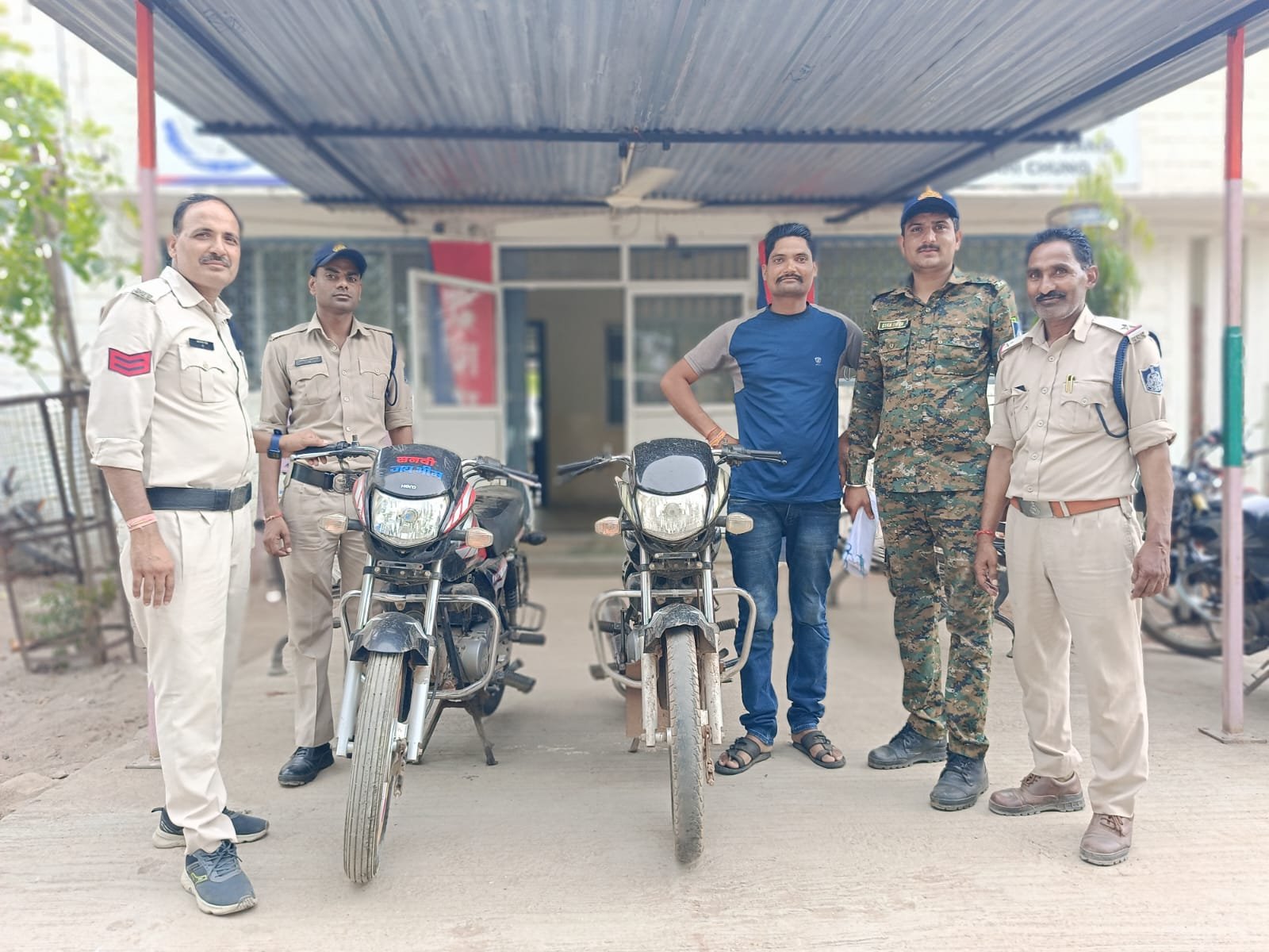 दिनांक 4 जून 2024 को बिट्टू पुत्र सरवन सिहं गआरिया उम्र 34 साल निवासी गायत्री कालौनी बैराड़ ने रिपोर्ट किया कि दिनांक 03 जून 2024 को दोपहर करीब 1 बजे अपनी मोटर साईकिल घर के सामने रखी थी शाम 4 बजे मैंने उठकर देखा तो मोटर साइकिल क्रमांक एमपी 33एमएस 7109 वहां पर नहीं थी कोई अज्ञात चोर चोरी कर ले गया जिस पर से थाना बैराड पर अप.क्रमांक 219/2024 धारा 379 भादवि का पंजीबद्ध कर विवेचना मे लिया गया. सूचना पर से नई अनाज मण्डी के पीछे बैराड से आरोपी आकाश पुत्र स्व सिध्दम जाटव निवासी टपरा मोहल्ला बैराड को गिरफ्तार किया गया एवं पूछताछ पर आरोपी से अपराध क्रमाक 219/24 धारा 379 भादवि मे चोरी गई मोटर साईकिल एच एफ डीलक्स काले लाल रंग की जिसका इंजन नम्बर HA11EMKHB00551 एव चेचिस नम्बर MBLHAC024KHB00502 की मोटर साईकिल चोरी करना स्वीकार किया गया एव अन्य मोटर साईकिल भी चोरी करना स्वीकार किया गया. आरोपी से पूछताछ को गई तो करीब 6 माह पहले ग्राम जौराई से एक मोटर साईकिल चोरी करना एवं करीब 6 माह पहले एक मोटर साईकिल ग्राम खटका से चोरी करना एव एक साल पहले थाना सिटी कोतवाली लाल माटी मनियर से एक मोटर साईकिल चोरी करना स्वीकार किया गया। उक्त आरोपी को गिरफ्तार कर न्यायालय पेश किया गया।