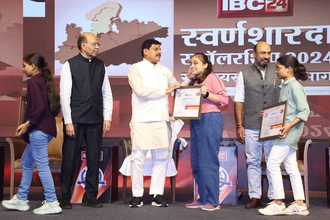 शिवपुरी: बामौर कलां की होनहार बेटी, अंशिका जैन, ने अपने गांव का नाम रोशन करते हुए मध्यप्रदेश के अशोकनगर जिले में 12वीं गणित समूह की परीक्षा में प्रथम स्थान प्राप्त किया। इस उपलब्धि के लिए उन्हें भोपाल में आयोजित एक विशेष सम्मान समारोह में मध्यप्रदेश के मुख्यमंत्री मोहन यादव द्वारा आइबीसी 24 स्वर्ण शारदा स्कॉलरशिप सम्मान 2024 से नवाजा गया।