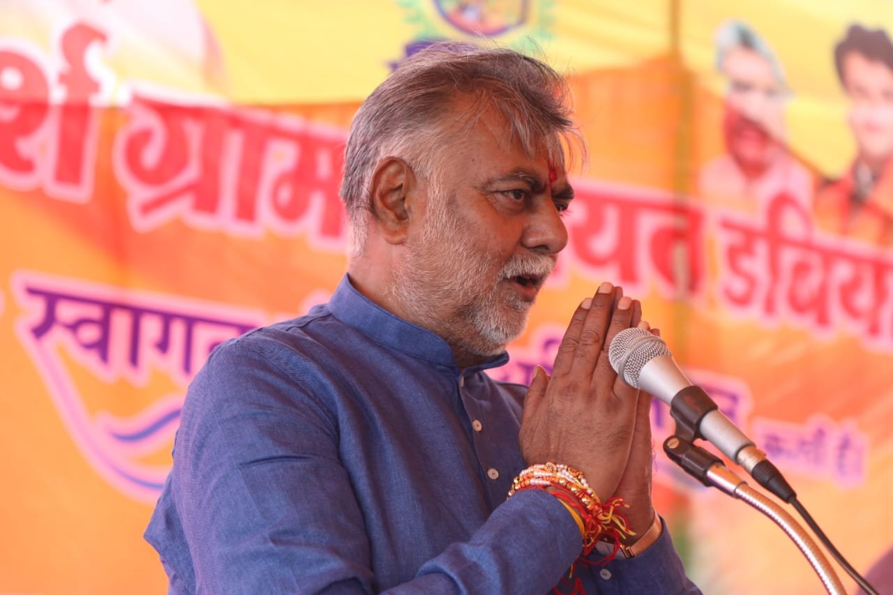 पंचायत मंत्री श्री प्रहलाद पटेल ने हितग्राही सहरिया परिवारों को नए घर की दी बधाई