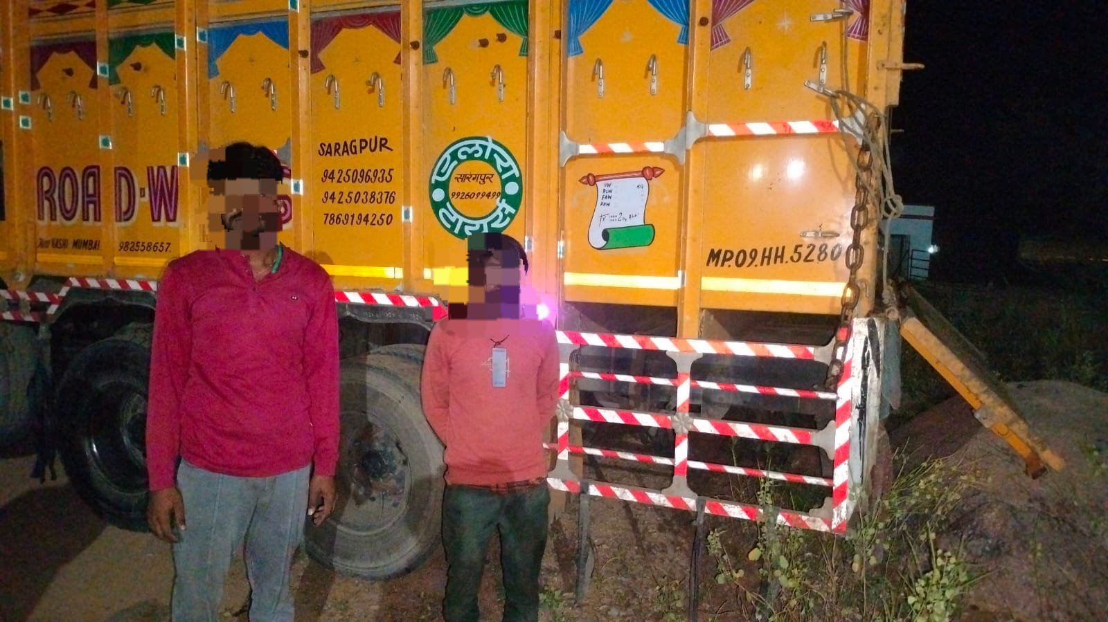 खनियांधाना थाना प्रभारी सुरेश शर्मा ने बताया की 26 अक्टूबर को 1.30 बजे सूचना मिली की विदिशा तरफ से दो ट्रक भैसों और पड़ो के भरे आ रहे हैं जो कटने के लिए आगरा तरफ जा रहे हैं. सूचना पर रेड्डी चौराहा पर चैकिंग लगाई गई तो कुछ देर बाद चंदेरी तरफ से दो ट्रक आते दिखे जिन्हे रोक कर चेक किया तो ट्रकों के डालों में पाटीशन बनाकर भैसों के पैर सिर बांधे हुए ठूस ठूस कर भरी हुई पाई गई। ट्रक क्रमांक: MP06HC8076 जिसमे 30 नग बडी भैसें ठूस ठूस कर भरी थी के चालक का नाम पता पूछा तो उसने अपना नाम मुन्ना पुत्र रफीक खान उम्र 55 साल निवासी ग्राम संतर रोड वाथम गली थाना निहालगंज जिला धौलपुर राजस्थान बताया तथा ट्रक में भरे भैसों के मालिक सकील खान पुत्र मुवारिक खान उम्र 30 साल निवासी करनेलगंज थाना सिटी कोतवाली जिला गुना बताया. ट्रक क्रमांक MP09HH5280 जिसमे 34 नग बडी भैसे एवं एक पड़ा ठूंस ठूस कर भरे थे के चालक का नाम पता पूछा तो उसने अपना नाम कपिल शर्मा पुत्र राजू शर्मा उम्र 25 साल निवासी सिरोंज थान सिंरोज जिला विदिशा म०प्र० और भैंसों के मालिक ने अपना नाम शिवराज पुत्र प्रकाश अहिरवार उम्र 22 साल निवासी ग्राम दीपना खेडा थाना दीपना खेडा जिला विदिशा म०प्र० का होना बताया, दोनों ट्रकों के चालकों एवं भैंस मालिकों से भैंसो के परिवहन एवं भैंसो के खरीदी के संबंध में कागजात चाहे गये तो न होना बताया तब आरोपीयों से 64 भैसें एवं 01 पडा कीमती 19 लाख 50 हजार रुपए एवं दो 14 चक्का ट्रक 40 लाख रुपए जप्त कर आरोपियों के विरुद्ध अपराध धारा।। पशु क्रूरता निवा. अधि. 1960 व 4 क, 6 क, 10 कृषक पशु परि. अधि. कायम कर विवेचना मे लिया गया है।