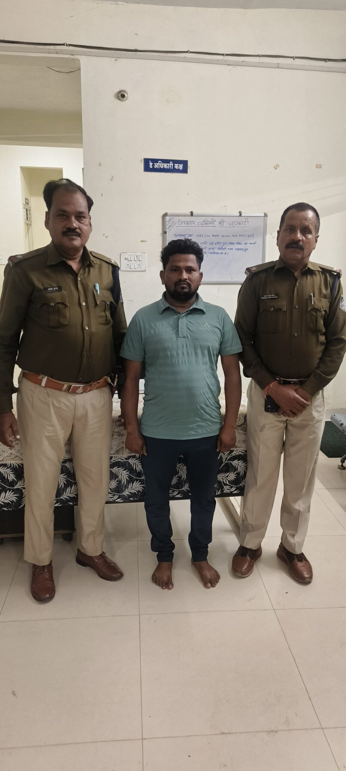 खनियांधाना थाना प्रभारी सुरेश शर्मा ने बताया की आरोपी अंजाम बल्ला गुर्जर निवासी मौरोली थाना कोतवाली धौलपुर राजस्थान ने साथी राधे परिहार, बबलू परिहार निवासी सिहौली थाना महाराजपुरा ग्वालिय, बल्लो गुर्जर, बृजभान उर्फ घोडा गुर्जर निवासी लक्ष्मणगढ थाना महाराजपुरा जिला ग्वालियर के द्वारा चोरी की बारदात को अंजाम दिया था.