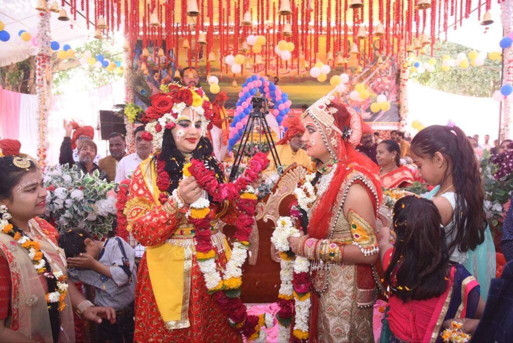 शिवपुरी: जिले के कोलारस वीरमखेड़ी रेलवे स्टेशन के पास ठाकुर बाबा मंदिर पर चल रही श्रीमद् भागवत कथा के छटवें दिन कथा में धूमधाम से हुआ कृष्ण रुक्मिणी विवाह पंडित आचार्य श्री मुकेश शास्त्री जी महाराज ने भगवान कृष्ण के महारास के प्रसंग पर प्रवचन दिए.