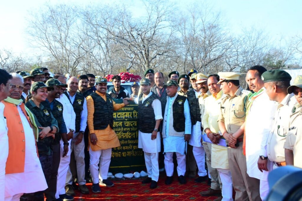 मुख्यमंत्री डॉ. मोहन यादव भोपाल से ग्वालियर पहुंचे, जिसके बाद ग्वालियर में वे केंद्रीय मंत्री ज्योतिरादित्य सिंधिया और ऊर्जा मंत्री प्रद्युमन सिंह तोमर के साथ हेलिकॉप्टर से शिवपुरी पहुंचे। शिवपुरी से सभी नेता सीधे सेलिंग क्लब माधव राष्ट्रीय उद्यान पहुंचे, जहां संयुक्त रूप से बाघिन को उसके नए आवास में छोड़ा गया।