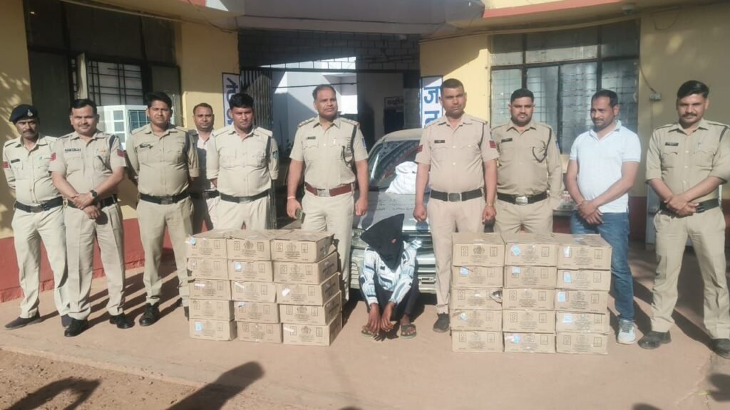 शिवपुरी: शहर के देहात थाना क्षेत्र अंतर्गत आने वाले ग्राम बांसखेड़ी के पास से एक युवक को अबैध शराब के साथ देहात थाना पुलिस ने गिरफ्तार किया हैं आरोपी अल्टो कार से शराब की तस्करी कर रहा था. इसी दौरान कार सहित 30 पेटी अबैध शराब जप्त की है.