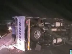 इस दौरान रास्ते में चालक ने एक किसान की प्याज भी लोड की थी। चालक को नींद का झोंका आने से वाहन का संतुलन बिगड़ गया। वाहन सड़क किनारे पलटने से 80 बोरी प्याज हाईवे पर बिखर गई।