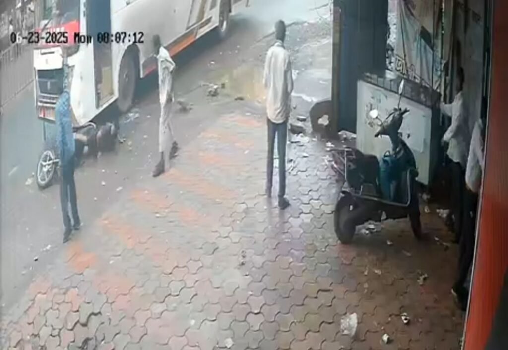 ग्वालियर बायपास पर बड़ा हादसा टला: बस ने बाइक को कुचला, युवक की जान बाल-बाल बची, घटना CCTV में हुई कैद, बस ड्राइवर मौके से फरार / Shivpuri News
