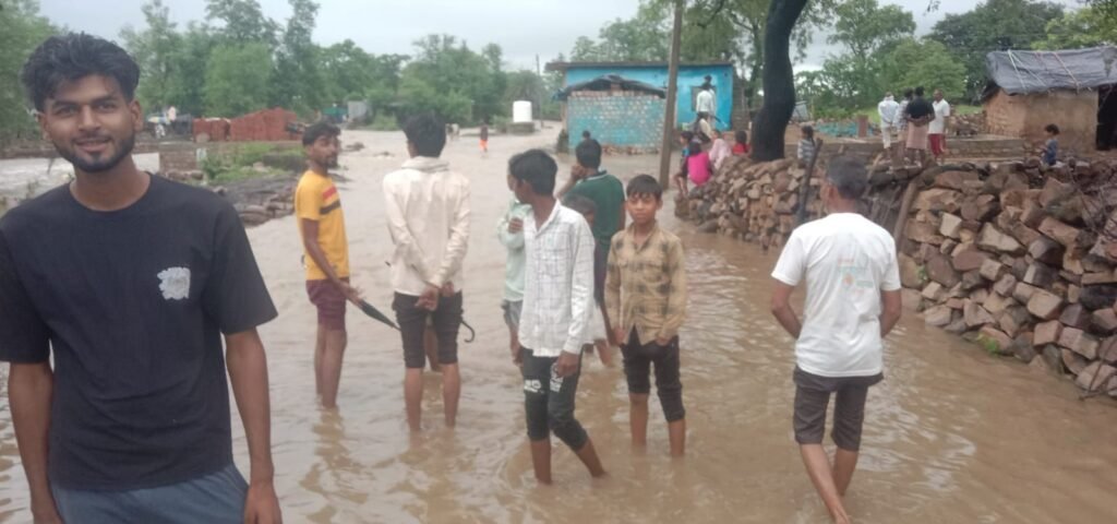 शिवपुरी के ग्राम पंचायत कुंअरपुर में रविवार देर रात तालाब की पार फूट जाने से गांव में बाढ़ जैसे हालात बन गए। रात करीब डेढ़ बजे अचानक गांव में पानी घुस आया, जिससे कई घरों में रखा अनाज और अन्य सामान पानी में बह गया। एक ग्रामीण की बाइक भी पानी के तेज बहाव में बह गई।