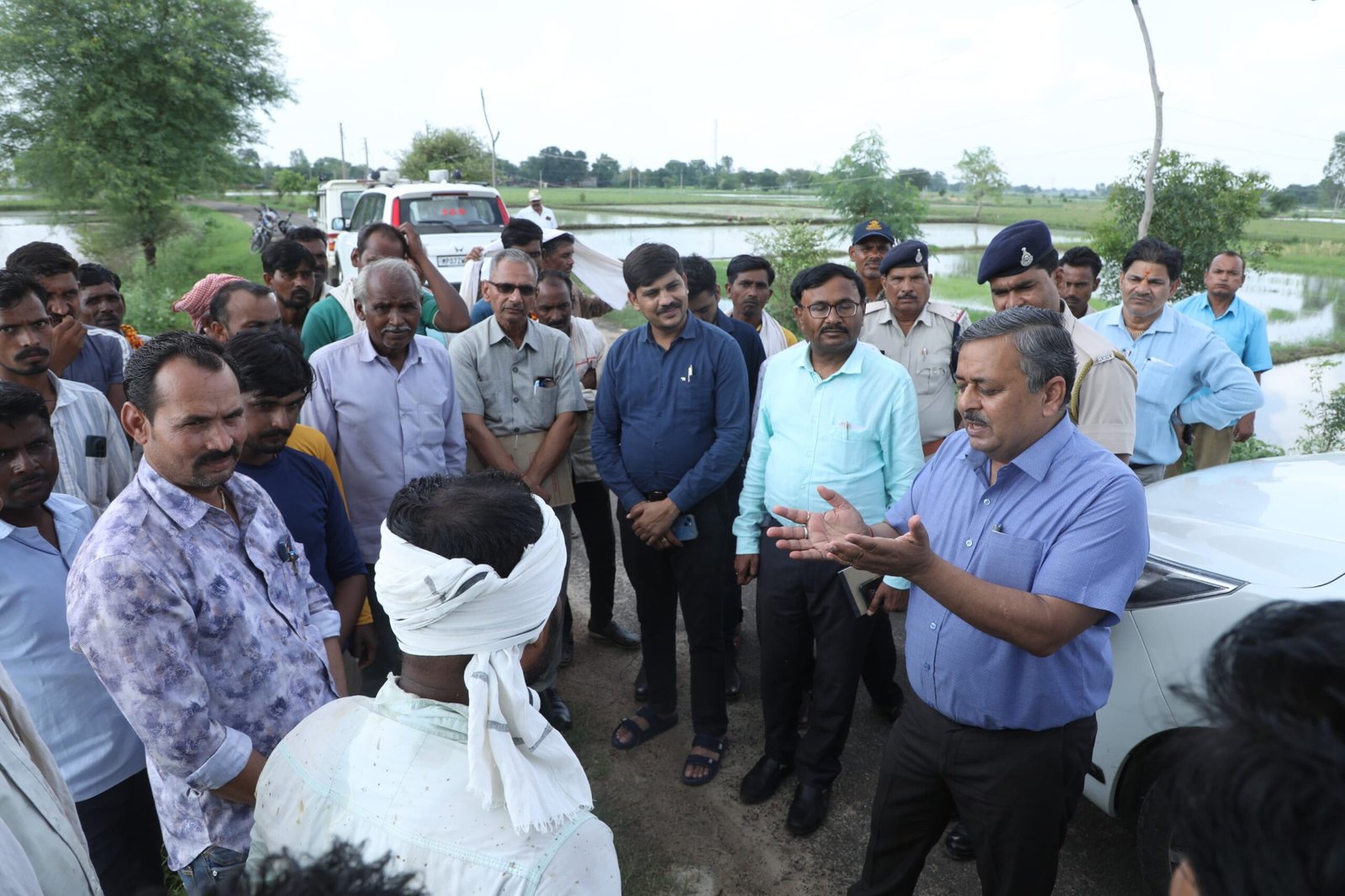 शिवपुरी: जिले में लगातार हो रही अधिक वर्षा से किसानों की फसलों को हो रहे नुकसान और नागरिकों को आ रही समस्याओं का जायजा लेने के लिए कलेक्टर रवीन्द्र कुमार चौधरी ने आज तहसील मगरौनी के ग्राम निजामपुर और खिरिया, तहसील करैरा के ग्राम नरौआ तथा नरवर नगर के वार्ड क्रमांक 12 का निरीक्षण किया। इस दौरान उन्होंने खेतों, रास्तों, स्कूल भवनों और बस्तियों की स्थिति देखी और ग्रामीणों से बातचीत कर उनके सुझाव भी सुने।