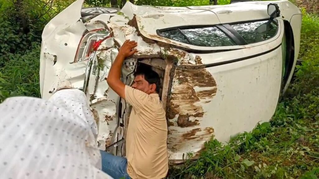 शिवपुरी: कोलारस थानांतर्गत फोरलेन हाईवे पर लखनऊ से उज्जैन दर्शन करने जा रहे श्रद्धालुओं से भरी एक कार मंगलवार की दोपहर हाईवे से गिरी और झाड़ियों पर अटक गई। इस कारण कार में सवार पांचों श्रद्धालुओं की जान बच गई। घायलों को उपचार के लिए कोलारस स्वास्थ्य केंद्र ले जाया गया। वहां से गंभीर घायलों को जिला अस्पताल रैफर कर दिया गया।