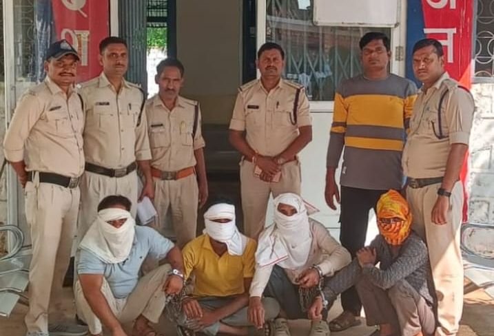 बैराड थाना पुलिस ने चार आरोपी शिब्बू उर्फ शिवदयाल रावत पुत्र बादशाह रावत उम्र 38 साल, रामेश्वर पुत्र रामसिंह रावत उम्र 58 साल, गजानन्द पुत्र रामसिंह रावत उम्र 24 साल, जयप्रकाश पुत्र रामेश्वर रावत उम्र 26 साल निवासीगण ग्राम जरियाकला थाना बैराङ को अपराध पंजीबद्ध होने के 4 घंटे के अन्दर गिरफ्तार कर माननीय न्यायालय के समक्ष पेश किया गया।