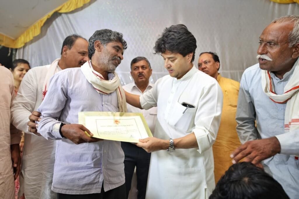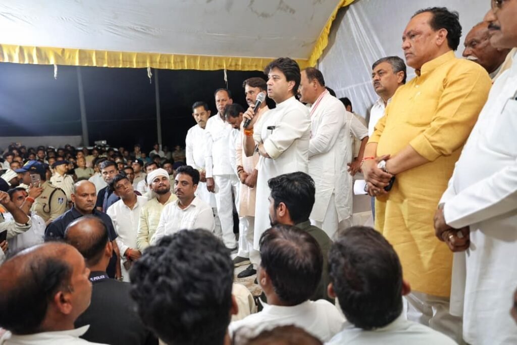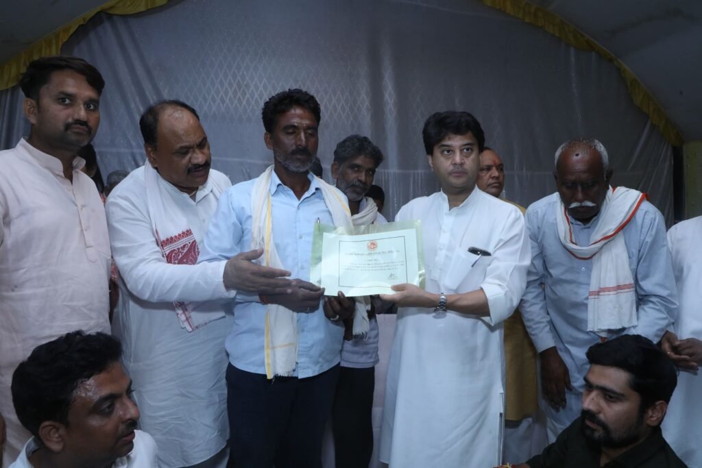शिवपुरी: केंद्रीय संचार एवं उत्तर पूर्वी क्षेत्र विकास मंत्री तथा गुना सांसद ज्योतिरादित्य सिंधिया आज अपने संसदीय क्षेत्र के चार दिवसीय प्रवास कार्यक्रम के तहत शिवपुरी जिले के कोलारस स्थित बाढ़ग्रस्त गाँव लिलवारा पहुँचे। सिंधिया ने आपदा प्रभावित ग्रामवासियों से सीधे संवाद करते हुए उनके लिए प्रशासन द्वारा उपलब्ध कराई जा रही बुनियादी सुविधाओं, राहत सामग्री और पुनर्वास कार्यों की जानकारी ली। उन्होंने गाँव में जाकर बाढ़ से क्षतिग्रस्त मकानों और खेतों का निरीक्षण किया तथा फसल को हुए नुकसान का भी आकलन किया।