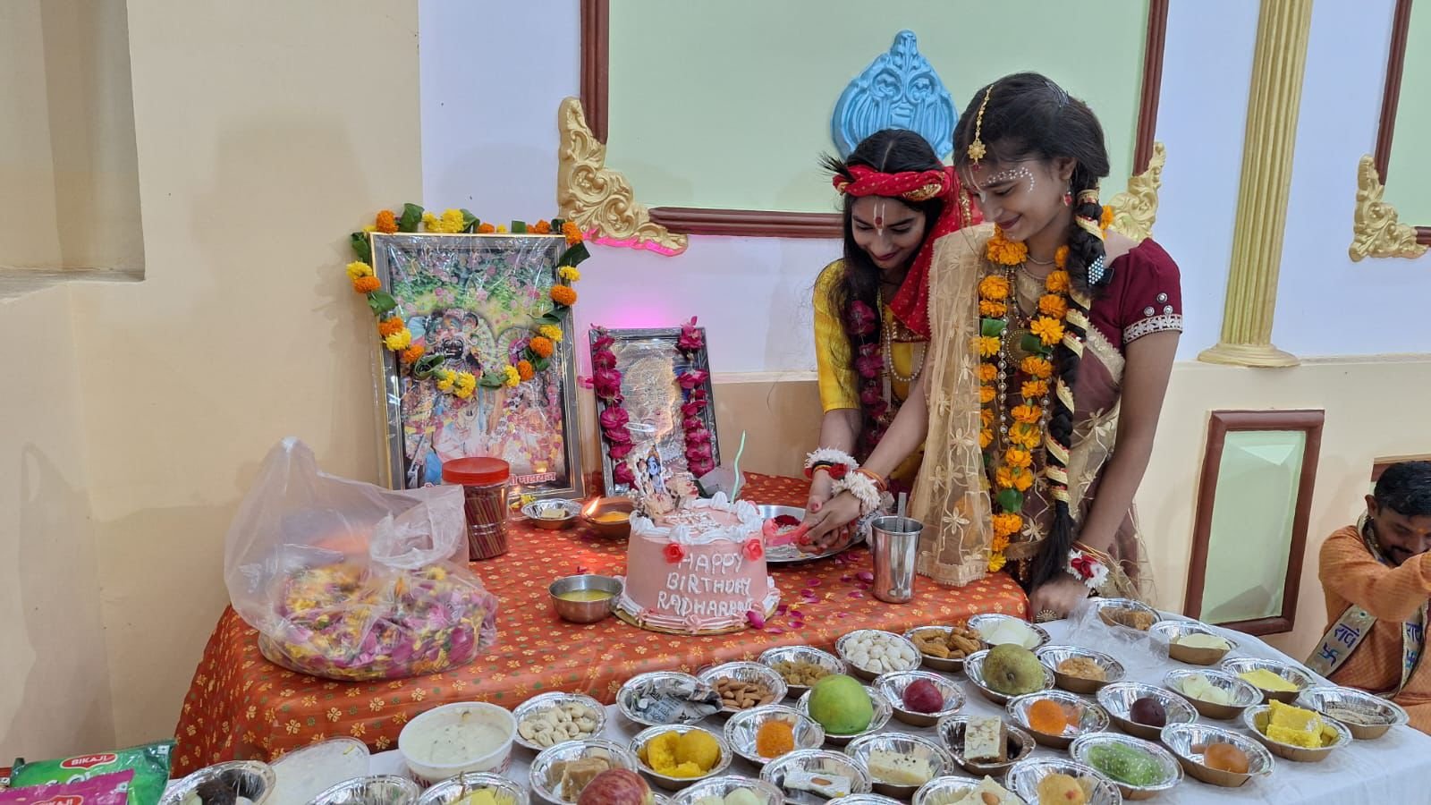 कार्यक्रम में मेरा श्याम परिवार की महिला मंडल ने राधा-कृष्ण की प्रतिमा पर माल्यार्पण किया और दीप प्रज्वलित कर पूजा-अर्चना की। छप्पन भोग का प्रसाद भक्तों के बीच वितरित किया गया। छोटे बच्चों कृतिका अवस्थी को राधा और रिया सेन को कृष्ण के रूप में सजाकर आकर्षक झांकी प्रस्तुत की गई। इसके बाद केक काटकर उत्सव की शुरुआत हुई। भजन गायकों ने राधा-कृष्ण के भजनों की मधुर प्रस्तुति दी, जिससे महिलाएं, पुरुष और बच्चे सभी भक्ति में झूम उठे। देर रात तक चले भजन-कीर्तन के इस आयोजन में भक्तों का उत्साह देखते ही बनता था।
