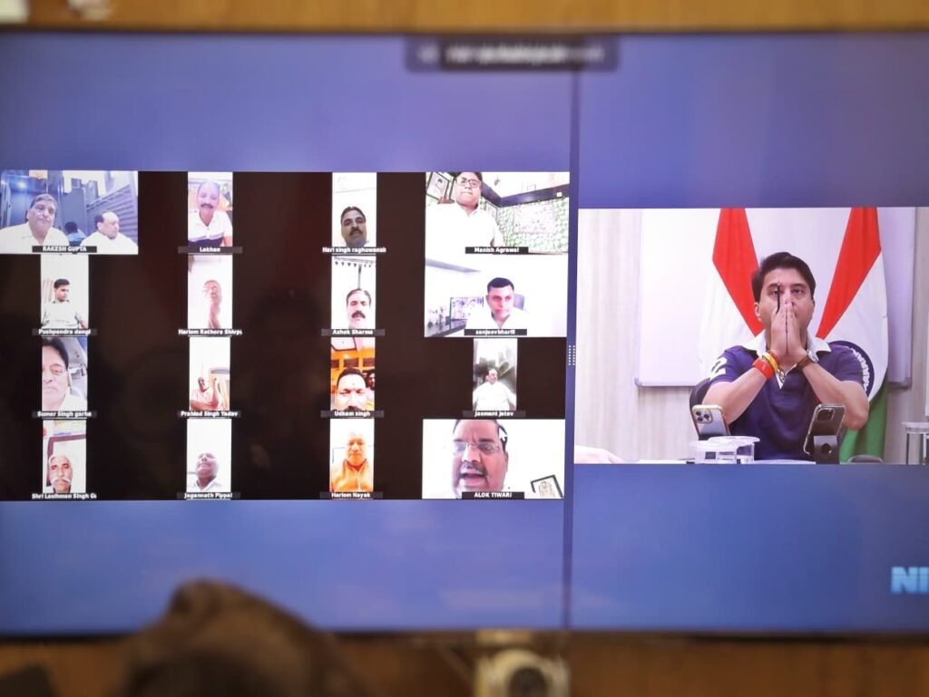 गुना/अशोकनगर/शिवपुरी। केंद्रीय संचार एवं उत्तर पूर्वी क्षेत्र विकास मंत्री और गुना सांसद ज्योतिरादित्य सिंधिया ने आज अपने लोकसभा क्षेत्र के सांसद प्रतिनिधियों और जन प्रतिनिधियों के साथ नई दिल्ली से वर्चुअल संवाद किया।