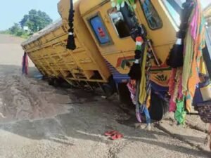 शिवपुरी: जिले में सोमवार को एक बड़ा हादसा होते-होते बच गया। पोहरी अनुविभाग क्षेत्र के बमरा-गुड़ा मार्ग पर स्थित भौरई पुलिया पर रेत से भरा डंपर पलट गया।