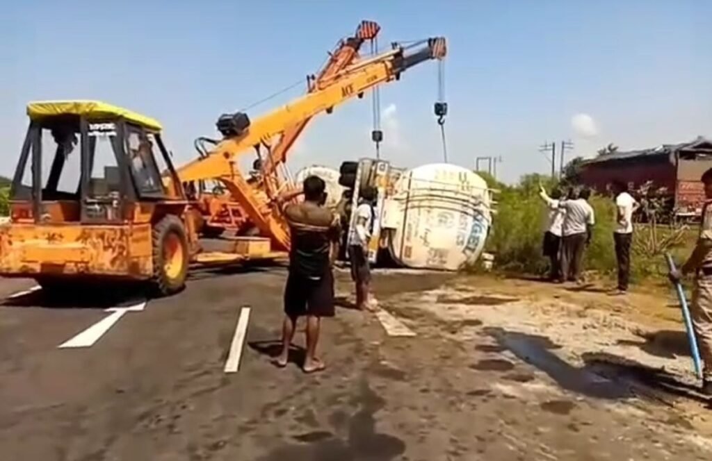 जानकारी के अनुसार, पीलीभीत निवासी ड्राइवर सतीश सिंह टैंकर लेकर मुंबई की फैक्ट्री से आसाम जा रहा था। टैंकर में पन्नी बनाने वाला केमिकल भरा हुआ था। ड्राइवर ने बताया कि जैसे ही वह बदरवास बायपास पर पहुंचा, तभी एक सवारियों से भरी बस ने ओवरटेक कर अचानक ब्रेक लगा दिए। बस से टकराव टालने के प्रयास में कार और बाइक को बचाने के चक्कर में टैंकर बेकाबू होकर पलट गया।
