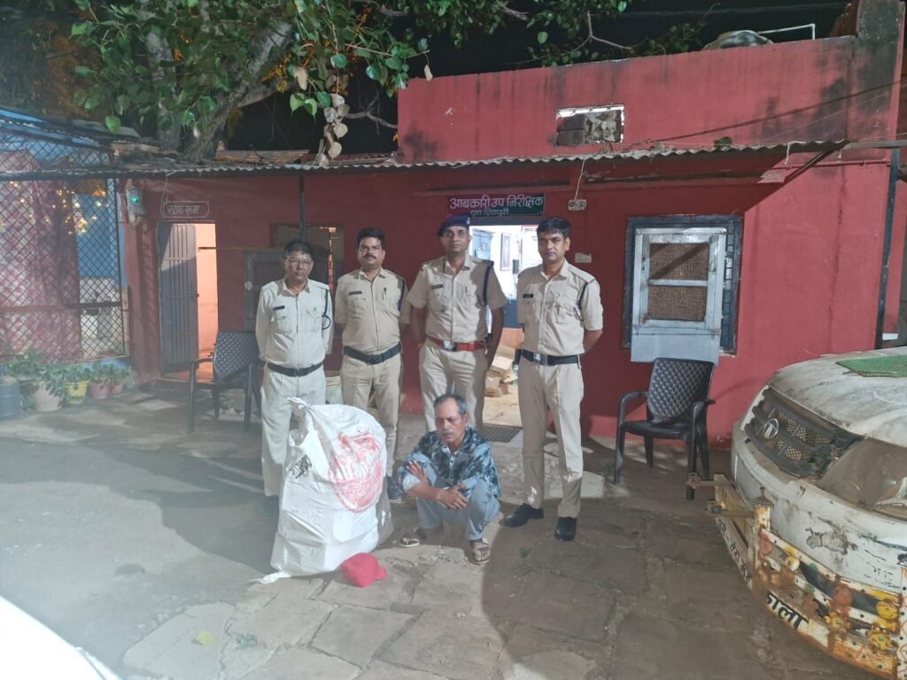शिवपुरी: जिले में अवैध मदिरा की बिक्री पर रोकथाम हेतु कलेक्टर शिवपुरी रवीन्द्र कुमार चौधरी एवं संदीप शर्मा उपायुक्त आबकारी, संभागीय उड़नदस्ता, ग्वालियर के निर्देशानुसार शुभम दांगोड़े, जिला आबकारी अधिकारी शिवपुरी के मार्गदर्शन में दिनांक 29 सितंबर 2025 को शिवपुरी के ग्वालियर बाइपास क्षेंत्रातर्गत मुखबिर की पिनपॉइन्ट सूचना पर देशी मदिरा गोदाम के पास से एक व्यक्ति को 54 लीटर देशी शराब के साथ गिरफ्तार कर धारा 34(2) मध्यप्रदेश आबकारी अधिनियम 1915 का प्रकरण पंजीबद्ध किया गया.