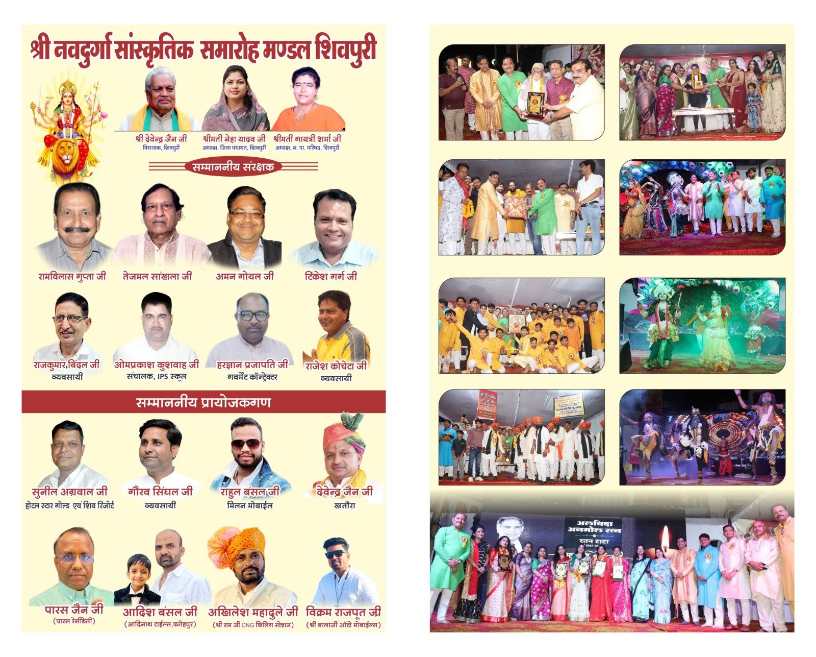 शिवपुरी: श्री नवदुर्गा सांस्कृतिक समारोह मण्डल द्वारा प्रतिवर्ष की भांति इस वर्ष भी नवरात्रि के पावन अवसर पर दुर्गा विसर्जन समारोह का भव्य आयोजन 01 अक्टूबर बुधवार को रात्रि 8:00 बजे से शिवपुरी टॉकीज के आगे, माधव चौक पर किया जा रहा है।