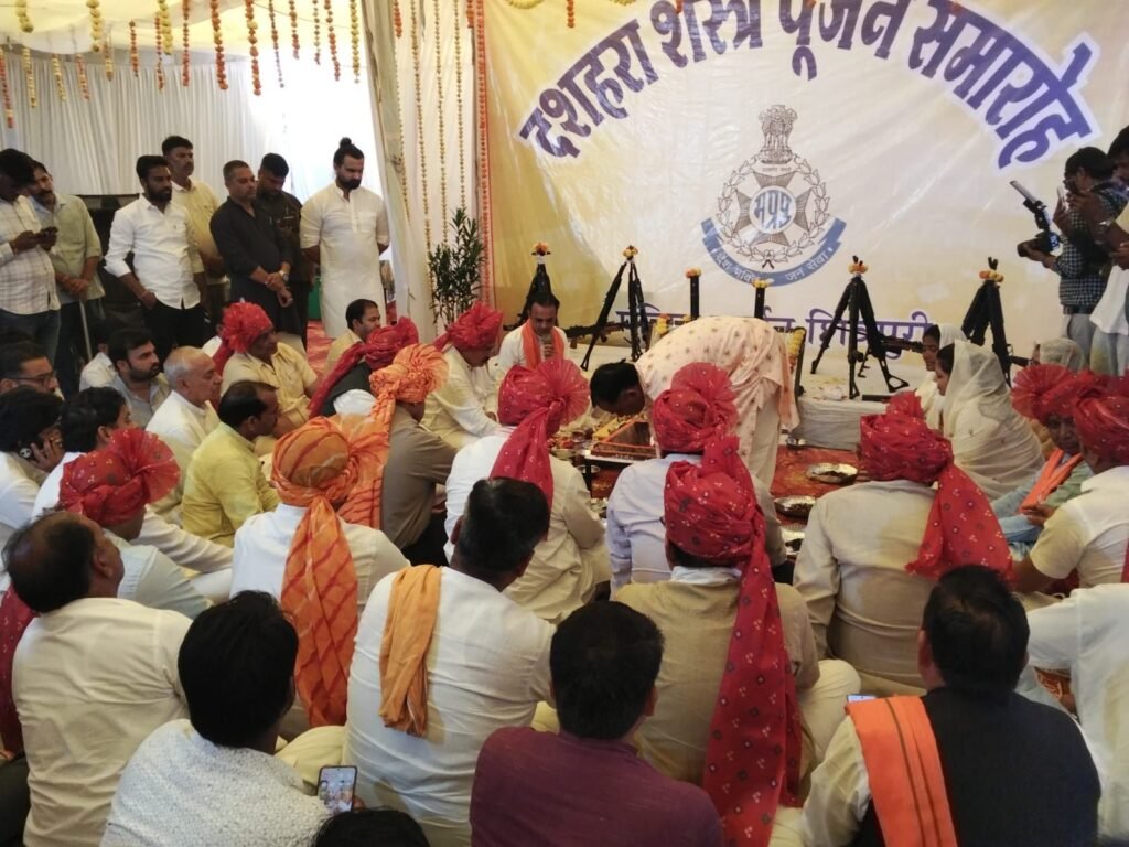 शिवपुरी: विजयादशमी के पावन पर्व पर शिवपुरी जिले में शस्त्र पूजन का भव्य आयोजन किया गया। परंपरा और आस्था के इस आयोजन में ऊर्जा मंत्री एवं जिले के प्रभारी मंत्री प्रद्युम्न सिंह तोमर मुख्य अतिथि के रूप में शामिल हुए।