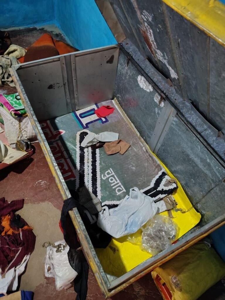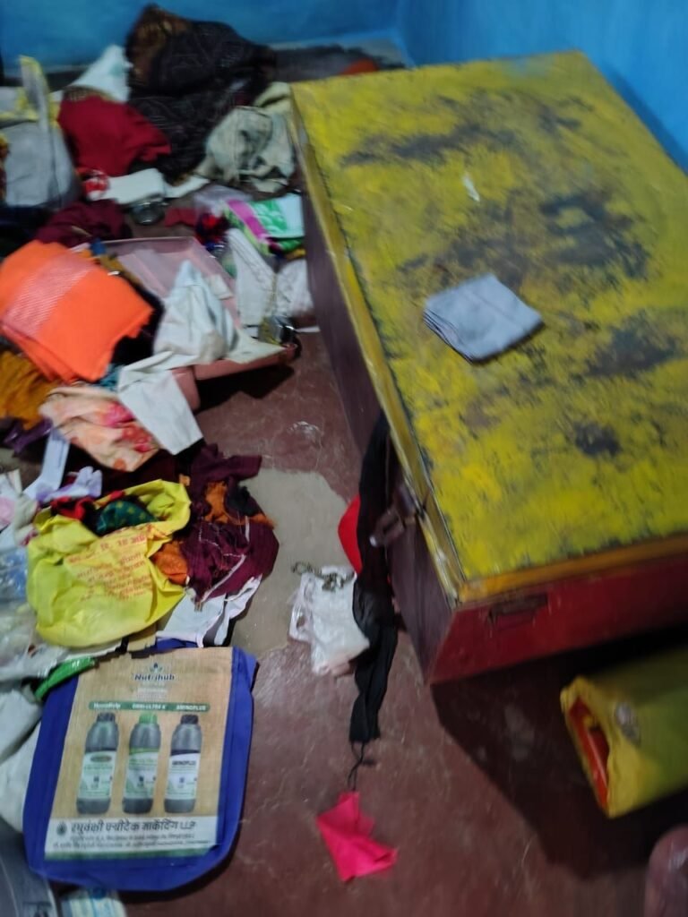 जानकारी के अनुसार, चोरी की रात परिवार घर में सो रहा था। चोरों ने पूजा घर का ताला तोड़कर अंदर रखा छोटा बक्सा निकाल लिया, जिसमें नकद और जेवरात रखे थे। सुबह जागने पर परिवार ने ताले टूटे और सामान बिखरा हुआ पाया।