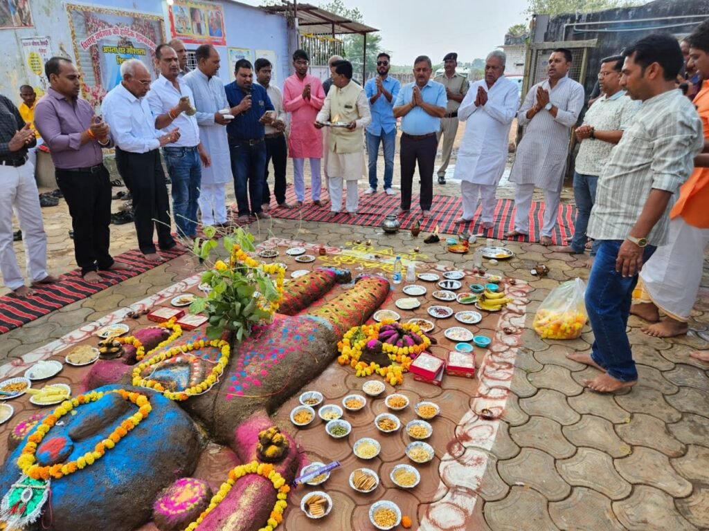 शिवपुरी: जिले में गोवर्धन पूजा का पर्व श्रृद्धा एवं पारंपरिक हर्षोल्लास के साथ मनाया गया। इस अवसर पर लुधावली स्थित अपना घर गौशाला में भव्य पूजा-अर्चना का आयोजन किया गया, जिसमें शिवपुरी विधायक देवेंद्र जैन, कलेक्टर रवीन्द्र कुमार चौधरी तथा पशुपालन विभाग के उप संचालक एल.आर.शर्मा, पार्षद विजय शर्मा सहित अनेक गणमान्य नागरिक उपस्थित रहे।गौशाला परिसर में विधायक एवं कलेक्टर ने गऊ सेवकों के साथ परंपरा अनुसार गोवर्धन भगवान की पूजा कर तुलादान किया। पूजा के पश्चात गौ माता की महिमा और समाज में गौ-सेवा के महत्व पर प्रकाश डाला गया। इस अवसर पर गऊ सेवकों को स्मृति चिन्ह एवं उपहार भेंटकर सम्मानित किया गया। पूर्व विधायक वीरेंद्र रघुवंशी और यशपाल रावत ने भी धर्मपुरा स्थित गौशाला में श्रद्धासहित पूजन में भागीदारी निभाई।