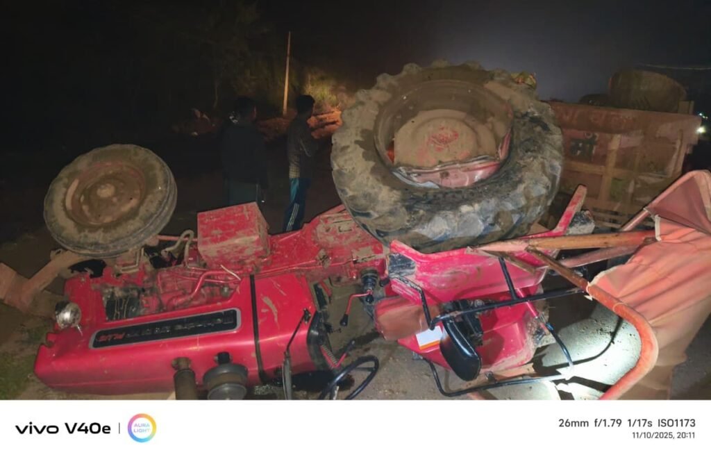 शिवपुरी: दिनारा थाना क्षेत्र के पिछोर-दिनारा मार्ग पर सोमवार रात एक तेज रफ्तार एक्सओ कार अनियंत्रित होकर ट्रैक्टर ट्रॉली से जा टकराई। टक्कर इतनी जबरदस्त थी कि ट्रॉली पलट गई और ट्रैक्टर पर सवार पति-पत्नी गंभीर रूप से घायल हो गए। वहीं कार सवार एक युवक भी बुरी तरह घायल हुआ है। पुलिस ने सभी घायलों को अस्पताल पहुंचाया है। जानकारी के अनुसार छितीपुर गांव का रहने वाला किसान केदार लोधी अपने खेत से मूंगफली का भूंसा भरकर अपनी पत्नी पवन लोधी के साथ गांव लौट रहा था। जब वे माता मंदिर के पास पहुंचे, तभी सामने से आ रही तेज रफ्तार एक्सओ कार (UP 93 CJ 0596) ने ट्रैक्टर ट्रॉली में जोरदार टक्कर मार दी। टक्कर से ट्रैक्टर का टायर फट गया टायर फटने से संतुलन बिगड़ गया और वह पलट गया। हादसे में दंपती गंभीर घायल हो गए। कार में सवार चार लोगों में से कपूर लोधी निवासी कुचलोन घायल हो गया, जिसे झांसी के अस्पताल में भर्ती कराया गया है। वहीं कार पूरी तरह क्षतिग्रस्त हो गई। सूचना मिलते ही दिनारा थाना पुलिस मौके पर पहुंची और सड़क पर पलटा टैक्टर व कार को ग्रामीणों की मदद से हटवाया। वहीं घायलों को उपचार के लिए झांसी के अस्पताल में भर्ती कराया है और मामले की जांच शुरू कर दी है।