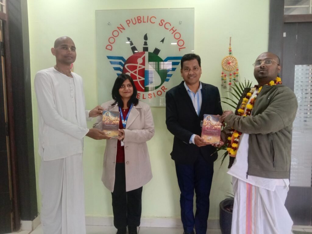 कार्यक्रम के आरंभ में दून पब्लिक स्कूल के संचालक शाहिद खान ने इस्कॉन के प्रचारक रसराज राधाकृष्ण दास प्रभु जी, जितेन्द्रीय दास प्रभुजी एवं आशुतोष प्रभुजी को फूल भेंट कर अभिनन्दन किया। स्वागत भाषण अखलाक खान ने दिया।