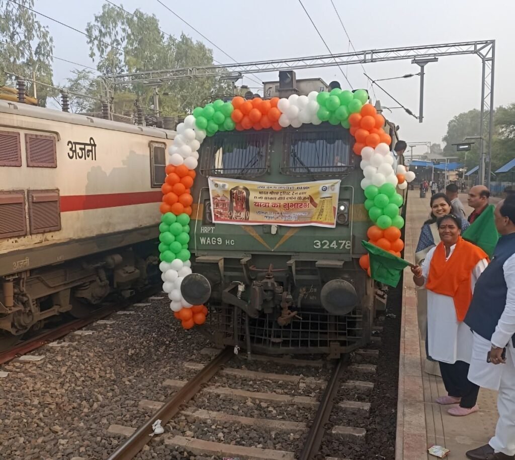 सभी तीर्थ यात्रियों को प्रातः वैलकम किट एवं नास्ते के पैकेट वितरित किये गये एवं उनकी सुखद यात्रा के लिये शुभकामनायें दी गई। ट्रेन को नियत समय पर हरी झण्डी दिखाकर रवना किया।