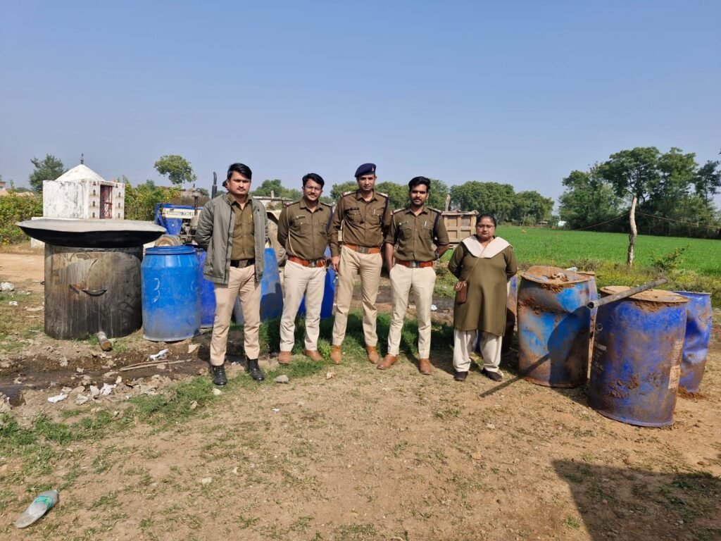एक अन्य कार्यवाही में छितीपुर कंजर डेरे पर दबिश देकर 6 प्रकरण दर्ज कर 300 लीटर हाथ भट्टी मदिरा एवं मदिरा निर्माण की सामाग्री ज़ब्त कर 4800 किलो गुड़ लहान मौके नष्ट किया गया.