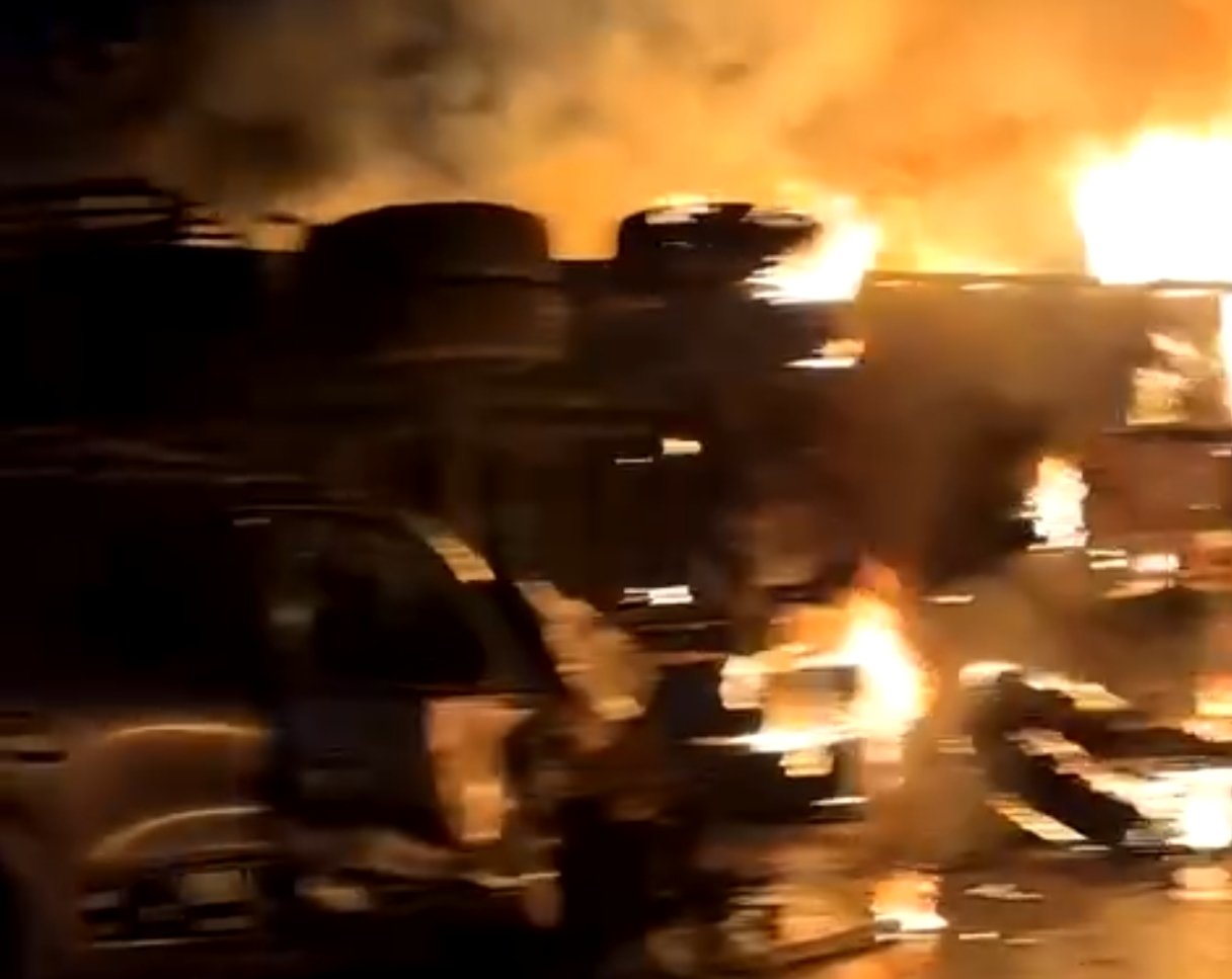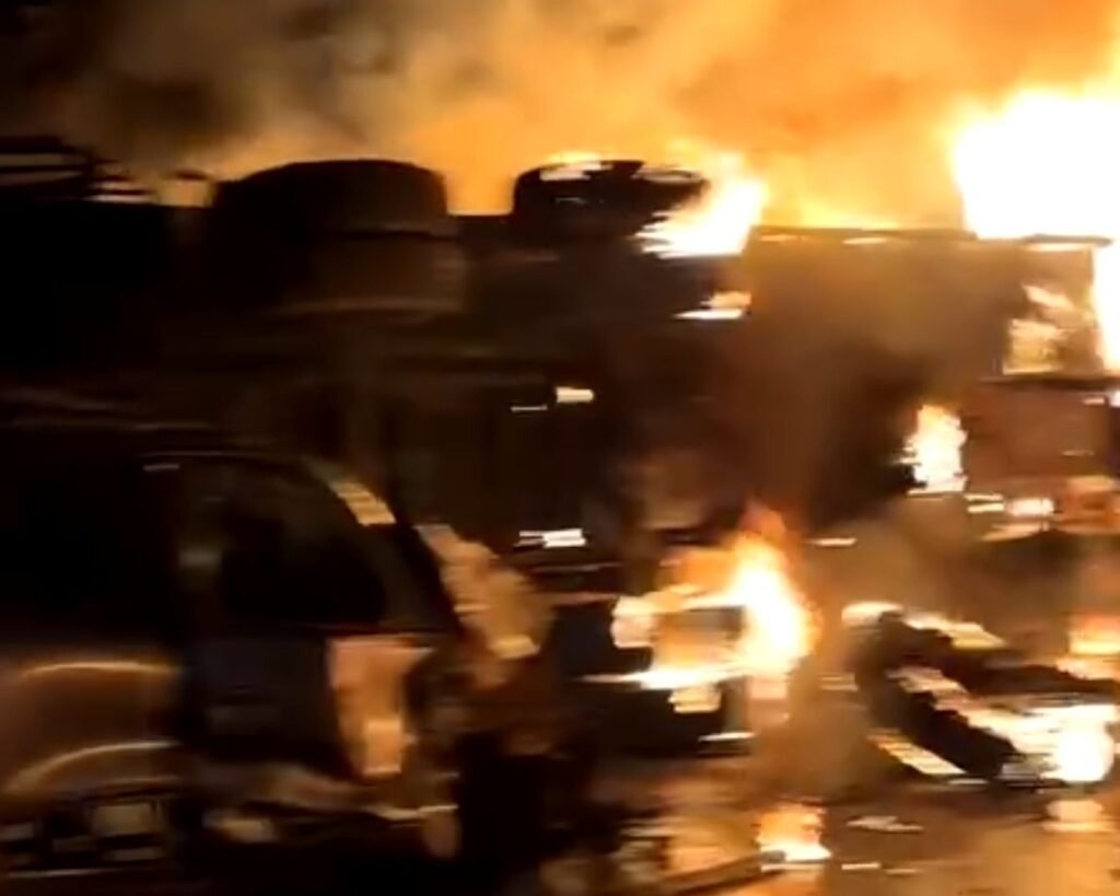 नेशनल हाईवे पर ट्रक पलटा तभी कार घुसी: भीषण आग लगी, हादसे और आग से घिरे युवकों को राहगीरों ने बचाया / Shivpuri News