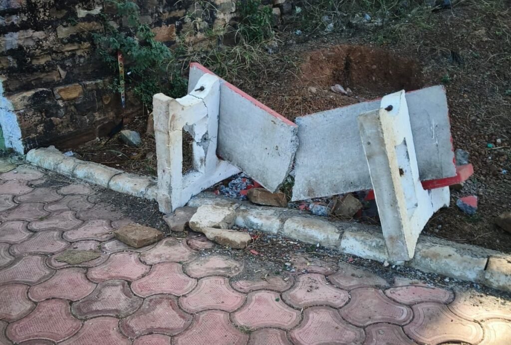 शिवपुरी: पोहरी किले के अंदर स्थित वार्ड न 07 मे ऐतिहासिक भुजरिया तालाब परिसर में नगर पंचायत द्वारा लगाई गई पत्थर की कुर्सियों को असामाजिक तत्वों ने क्षतिग्रस्त कर दिया। सार्वजनिक उपयोग की इन कुर्सियों को तोड़कर शासकीय संपत्ति को नुकसान पहुंचाया गया,
