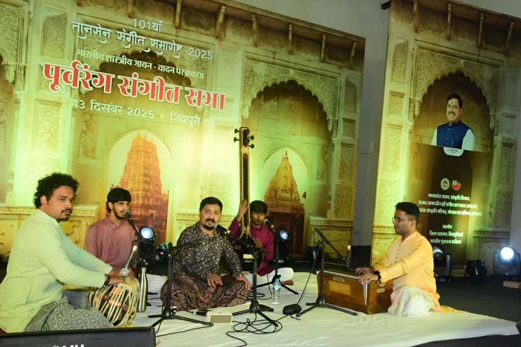 शिवपुरी: 101वें विश्व प्रसिद्ध संगीत समागम कार्यक्रम तानसेन समारोह पूर्वरंग संगीत सभा का आयोजन गतदिवस टाउन हॉल शिवपुरी में किया गया। सर्वप्रथम कार्यक्रम का शुभारंभ मुख्य अतिथि जिला पंचायत अध्यक्ष नेहा यादव, प्रहलाद भारती, पूर्व विधायक पोहरी द्वारा परम्परागत रूप से मां सरस्वती की प्रतिमा पर माल्यार्पण एवं दीप प्रज्जवलित कर किया गया। इस अवसर पर कलेक्टर रवीन्द कुमार चौधरी एवं अन्य प्रशासनिक अधिकारी भी उपस्थित रहे।