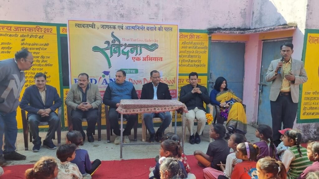 बांसखेड़ी ग्राम में आयोजित संवेदना एक अभियान कार्यक्रम में शासकीय प्राथमिक विद्यालय के शिक्षक जय कुमार शर्मा एवं राजीव नयन शर्मा का सम्मान उनके उत्कृष्ट कार्य के लिए किया गया ।कार्यक्रम में दून स्कूल के प्राचार्य अभिषेक शर्मा, कल्पना बुद्धराजा , वेदप्रकाश यादव, बलराम शर्मा, सहित समस्त स्टाफ एवं दून स्कूल के छात्र-छात्राएं उपस्थित रहे।