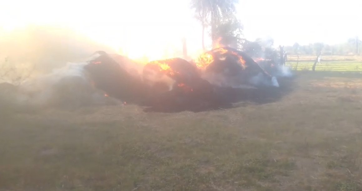 शॉर्ट सर्किट से किसान के खेत में रखे भूस-प्याल में लगी आग / Shivpuri News