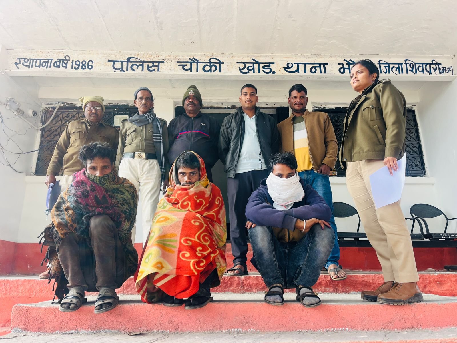 भोंती थाना प्रभारी घनश्याम भदौरिया ने बताया की 4 जनबरी 2026 को आरोपी मंगल उर्फ मेघा उर्फ मंघा आदिवासी पुत्र फूल सिहं आदिवासी उम्र 26 साल, बबलू आदिवासी पुत्र फूल सिहं आदिवासी उम्र 24 साल, पदम आदिवासी पुत्र फूल सिहं आदिवासी उम्र 28 साल निवासीगण ग्राम खेरोना ग्राम खैरोना थाना भौंती जिला शिवपुरी को गिरफ्तार कर माननीय न्यायालय में पेश किया गया है।