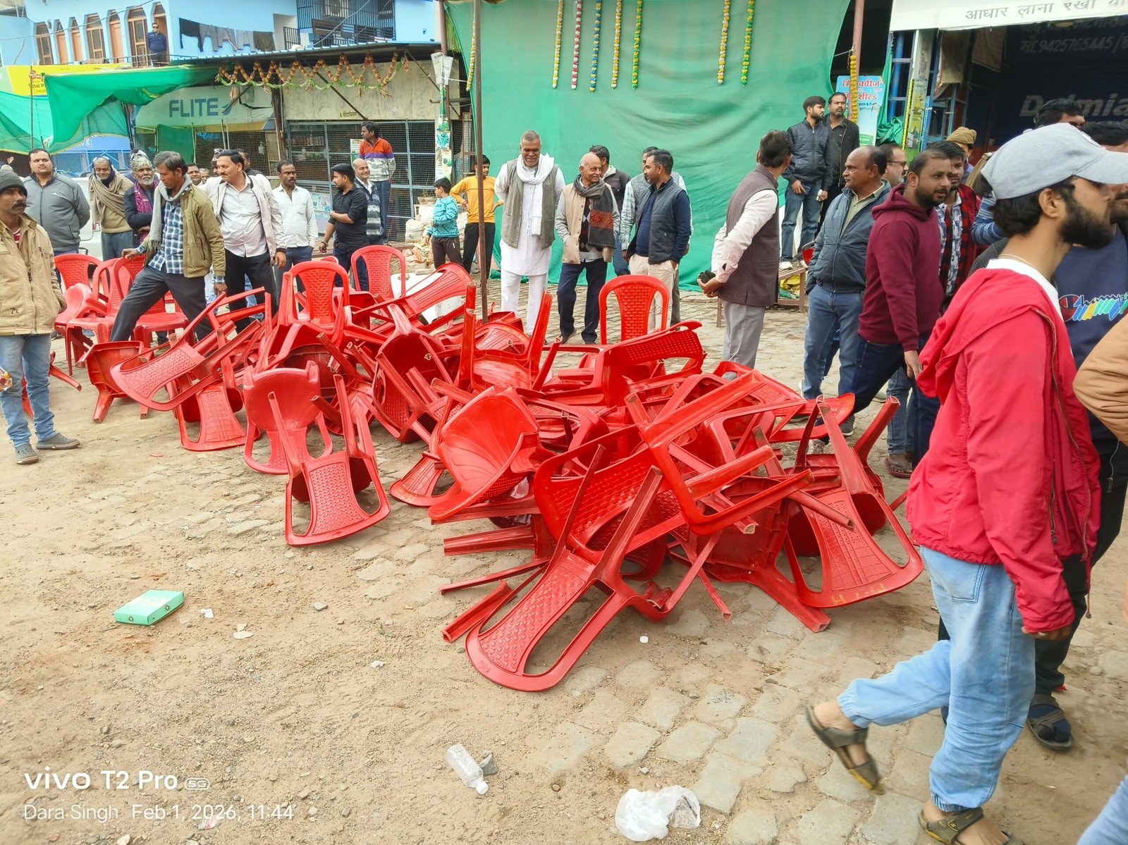 जिले के करैरा में बजट के लाइव प्रसारण के दौरान सवर्ण समाज की भीड़ में लोगों ने कुर्सियां फेंकी. इसके बाद पदाधिकारी टेंट के पीछे भागकर बचते नजर आए.