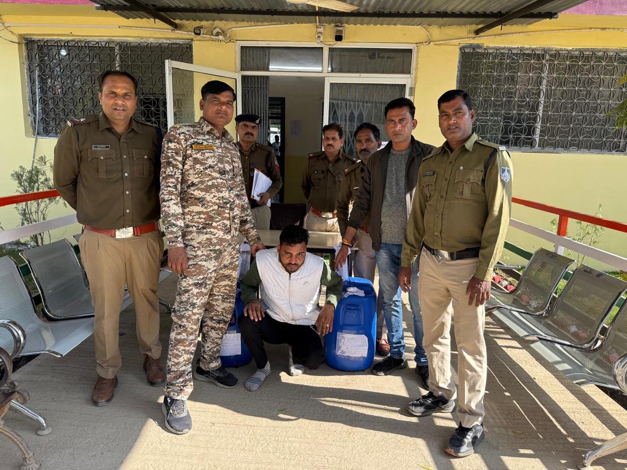 तलाशी के दौरान आरोपी के पास रखी दो प्लास्टिक कैनों में हाथ भट्टी से बनी 100 लीटर कच्ची शराब मिली, जिसकी अनुमानित कीमत 30 हजार रुपये बताई गई है। पुलिस ने शराब जब्त कर आरोपी को गिरफ्तार किया और आबकारी एक्ट के तहत कार्रवाई करते हुए उसे माननीय न्यायालय में पेश किया।