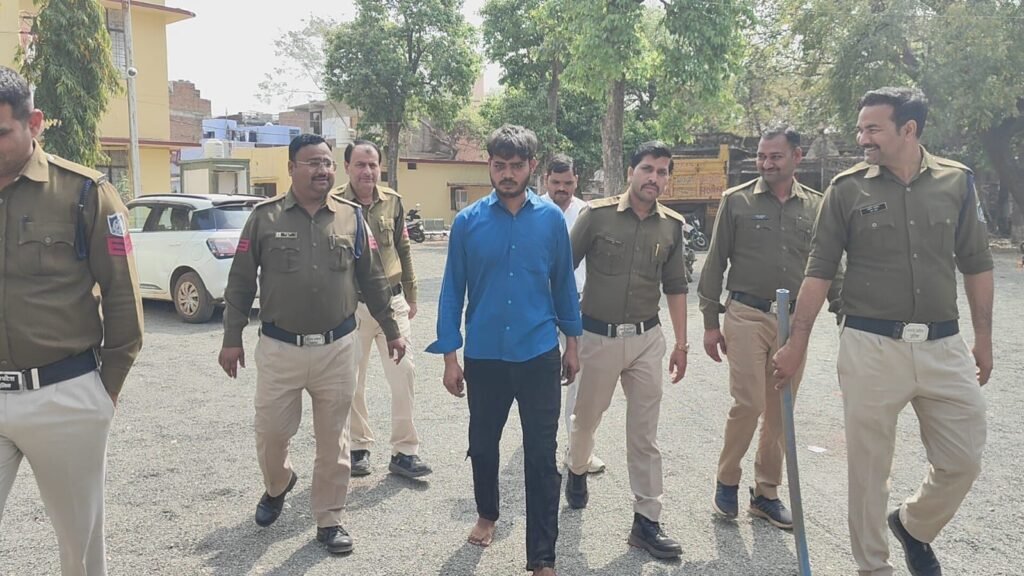 शिवपुरी: जिले (देहात थाना क्षेत्र) में पुलिस ने एक टीआई (टाउन इंस्पेक्टर) के साथ गाली-गलौज करने और उनकी कॉलर पकड़ने वाले आरोपी का शुक्रवार को जुलूस निकाला। आरोपी को मुख्य बाजार से पैदल ले जाया गया, जहां वह ‘अपराध करना पाप है, पुलिस हमारा बाप है’ के नारे लगाता हुआ नजर आया। पुलिस ने आरोपी को कोर्ट में पेश किया, जहां से उसे न्यायिक अभिरक्षा में जेल भेज दिया गया है।