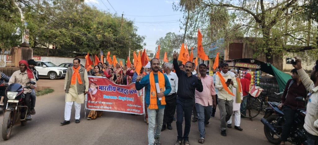 शिवपुरी। श्रमिकों और कर्मचारियों की विभिन्न मांगों को लेकर भारतीय मज़दूर संघ ने बुधवार को रैली निकालकर विरोध दिवस मनाया और जिला कलेक्टर को ज्ञापन सौंपा। कार्यक्रम का नेतृत्व विभाग प्रमुख फतेह सिंह गुर्जर, जिला अध्यक्ष शत्रुघ्न सिंह तोमर एवं जिला मंत्री जितेंद्र श्रीवास्तव ने किया।